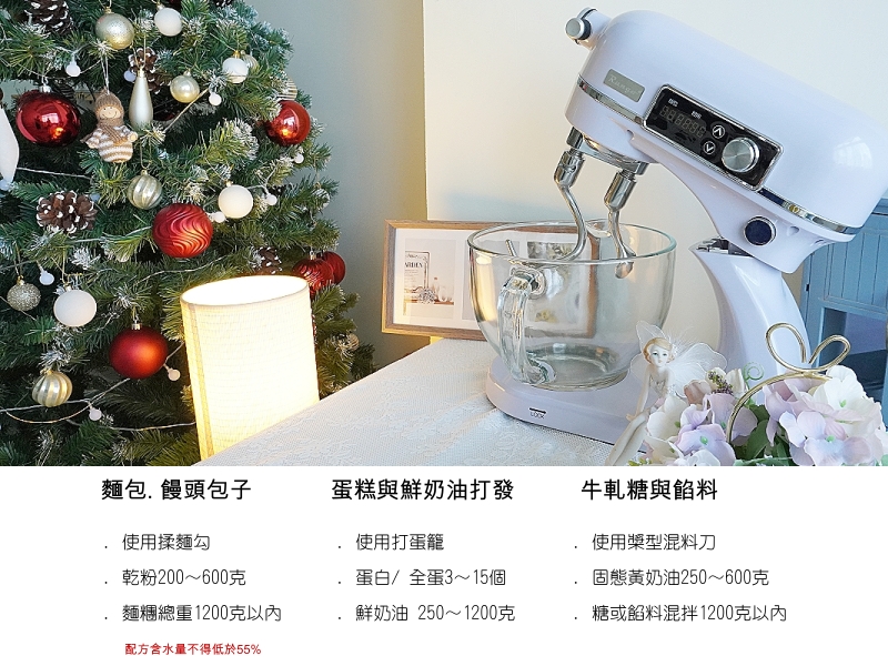攪拌麵糰:請使用1-3檔攪拌,嚴禁使用4-12檔攪打麵糰。