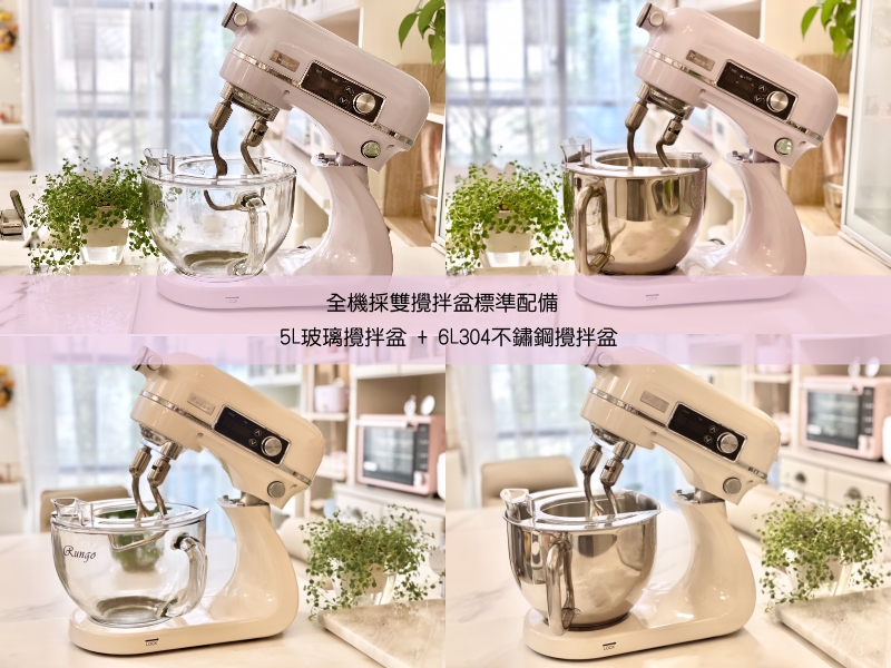 ☆6L輕音雙軸為雙盆標配,其中玻璃攪拌盆嚴禁使用Rungo一般款混料槳,因此此系列搭配的皆為爪型混料槳,且訂購時不接受更換要求。