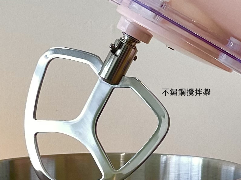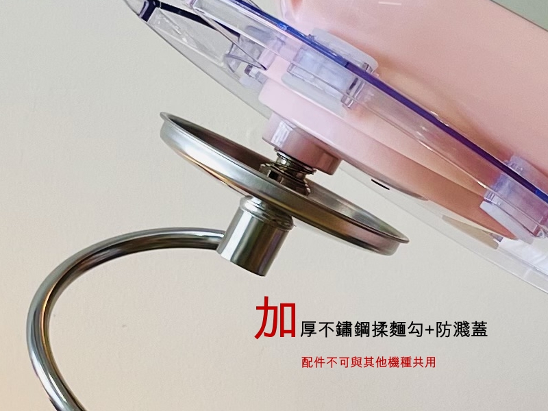 . 產品配件 : 304不鏽鋼攪拌盆、揉麵勾、打蛋籠、攪拌槳、透明防噴蓋
