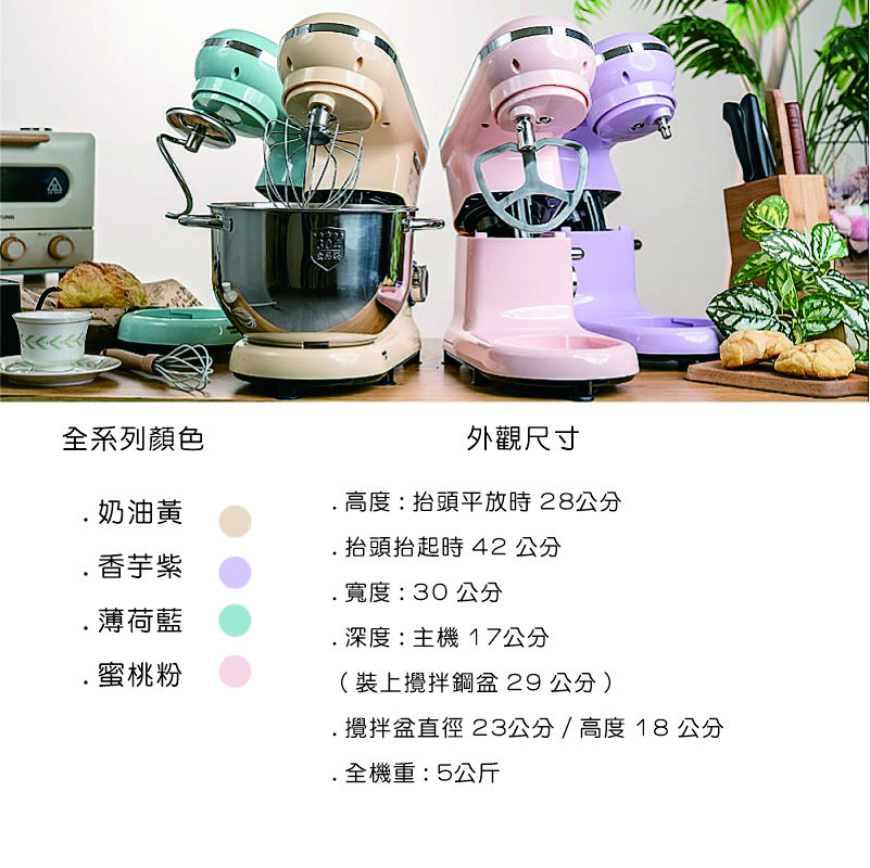 5.5L 單軸桌上型多功能抬頭式攪拌機香芋紫