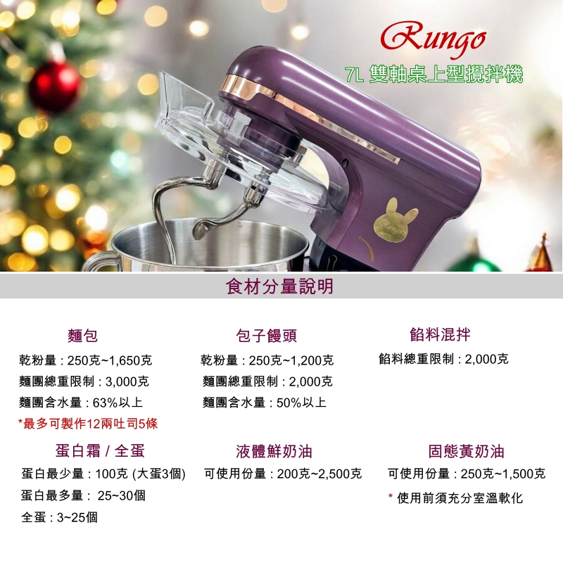 7L 雙揉麵鈎桌上型多功能抬頭式攪拌機金牌女王紫-深紫
