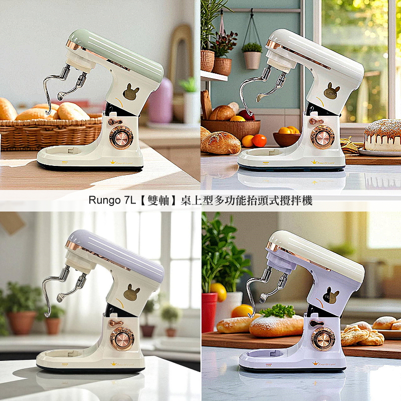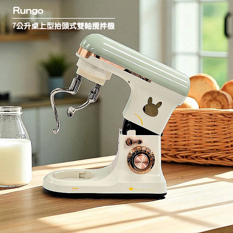 【Rungo】7L 雙揉麵鈎桌上型多功能抬頭式攪拌機|丙級證照練習/大製作量家庭專用