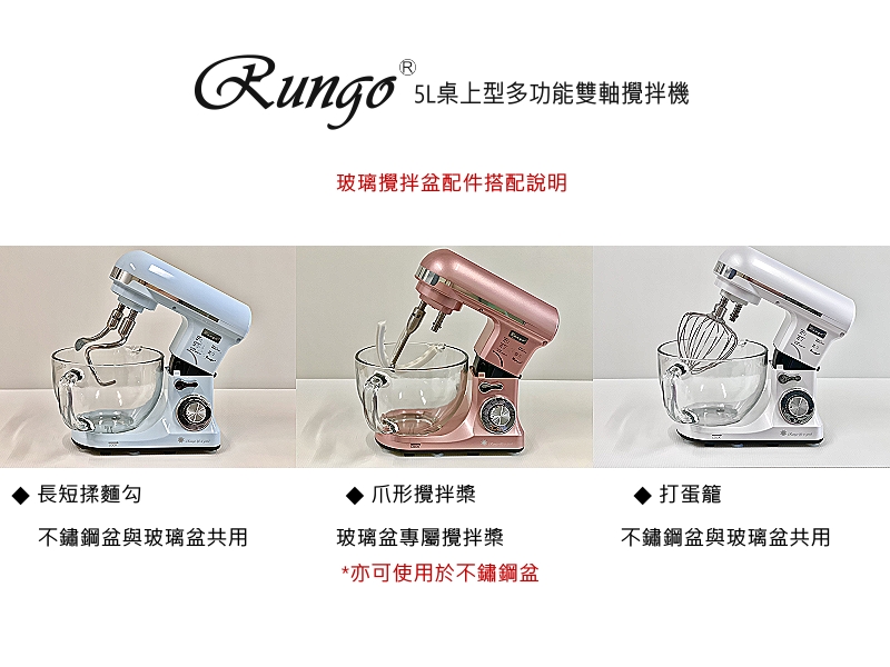 Rungo5L雙軸攪拌機專用玻璃攪拌盆組