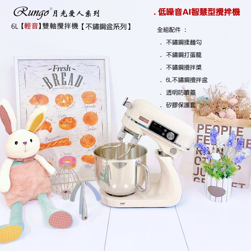 月光愛人系列-6L雙軸輕音攪拌機月光白不鏽鋼盆組